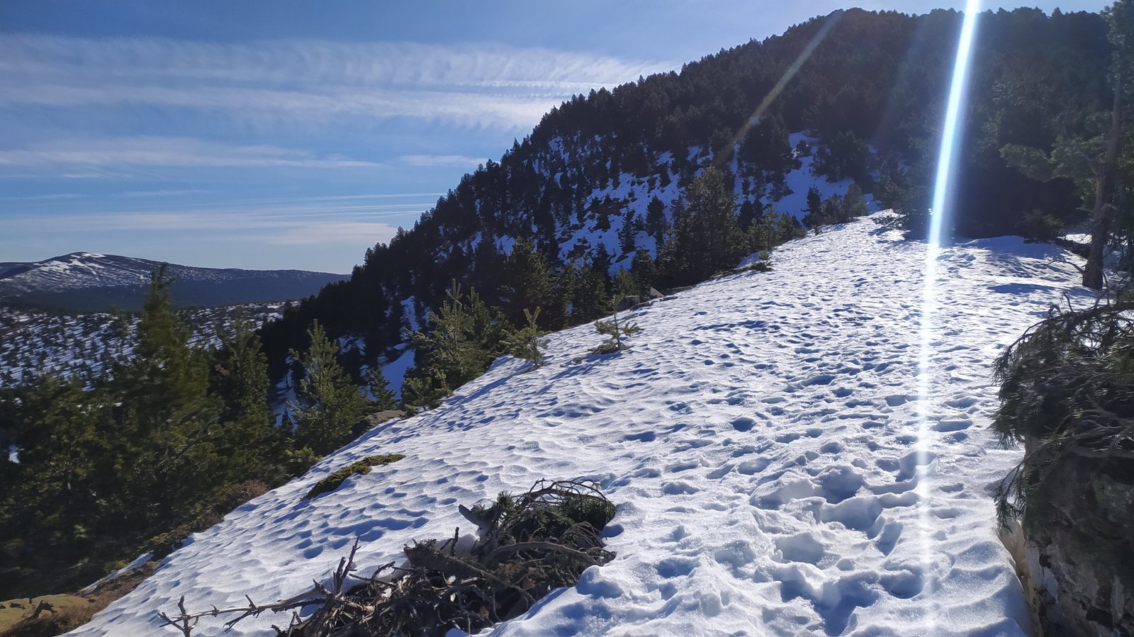 Hay una sita forestal pero no debemos tomar, pues la ruta sube por el límite de la pista de esquí y en algún tramo y en verano hasta podemos ir por medio de esta pista.